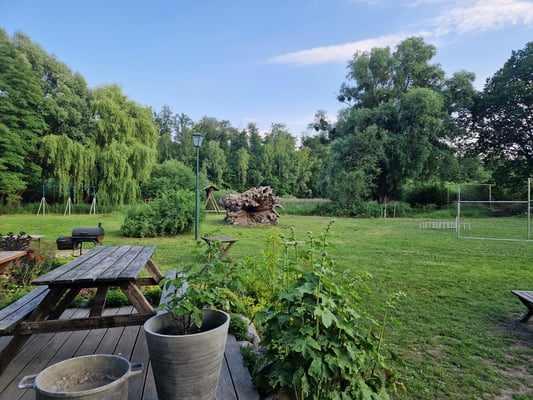 Das großzügige Gelände mit Seilbahn, Schaukeln, Fußballplatz und einer großen Lagerfeuerstelle ließ keine Langeweile aufkommen. Abende am Feuer mit Stockbrot, Musik und Gesprächen unter dem Sternenhimmel gehörten ebenso dazu wie kleine Turniere auf dem Fußballfeld oder einfach mal die Seele baumeln lassen.
