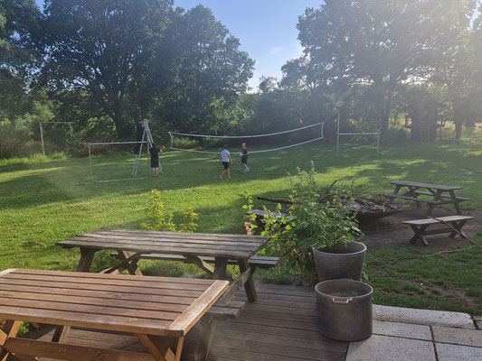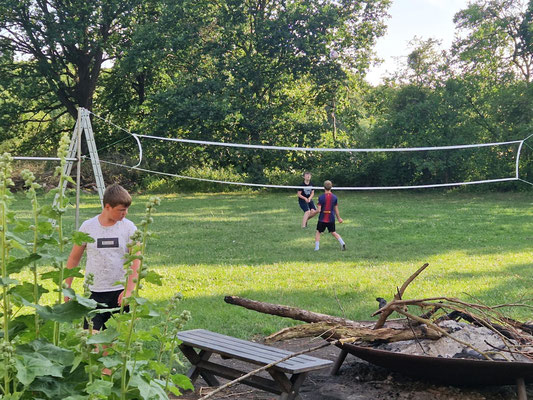 Das großzügige Gelände mit Seilbahn, Schaukeln, Fußballplatz und einer großen Lagerfeuerstelle ließ keine Langeweile aufkommen. Abende am Feuer mit Stockbrot, Musik und Gesprächen unter dem Sternenhimmel gehörten ebenso dazu wie kleine Turniere auf dem Fußballfeld oder einfach mal die Seele baumeln lassen.