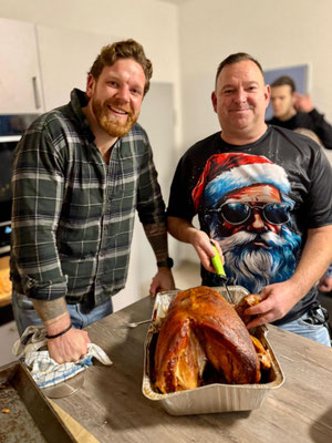 Die Wohnküche war festlich geschmückt, der Weihnachtsbaum liebevoll dekoriert und der große Tisch festlich eingedeckt. In der Mitte: eine goldbraun gebratene Pute, die gemeinsam vorbereitet und mit viel Appetit verspeist wurde. Dazu gab es Beilagen, selbst gemachte Soße – und natürlich auch ein paar süße Leckereien.