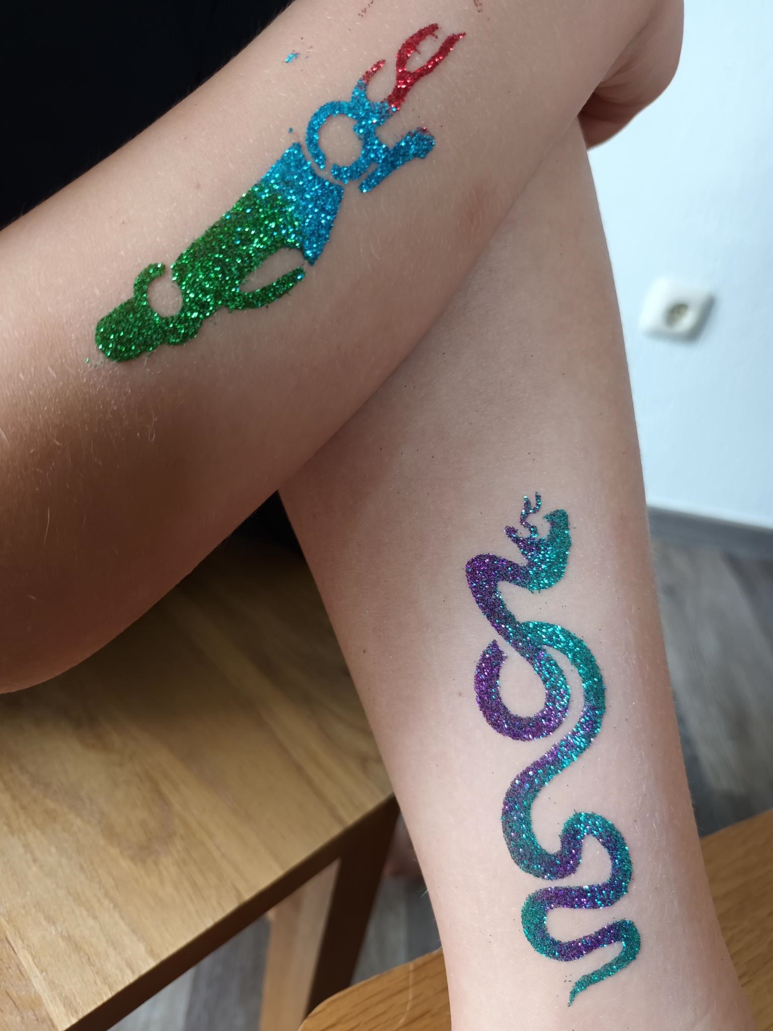 In der Wohngruppe Eisbergen wurde fleißig tätowiert. Schlangen, Sterne, Blumen und co. Standen hoch im Kurs. Egal ob sieben Jahre oder vierzehn Jahre alt – ein Glitzertattoo geht IMMER!