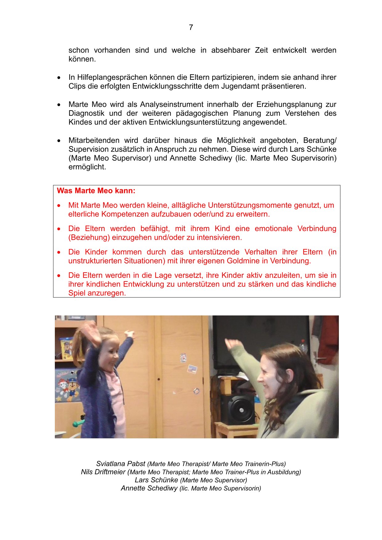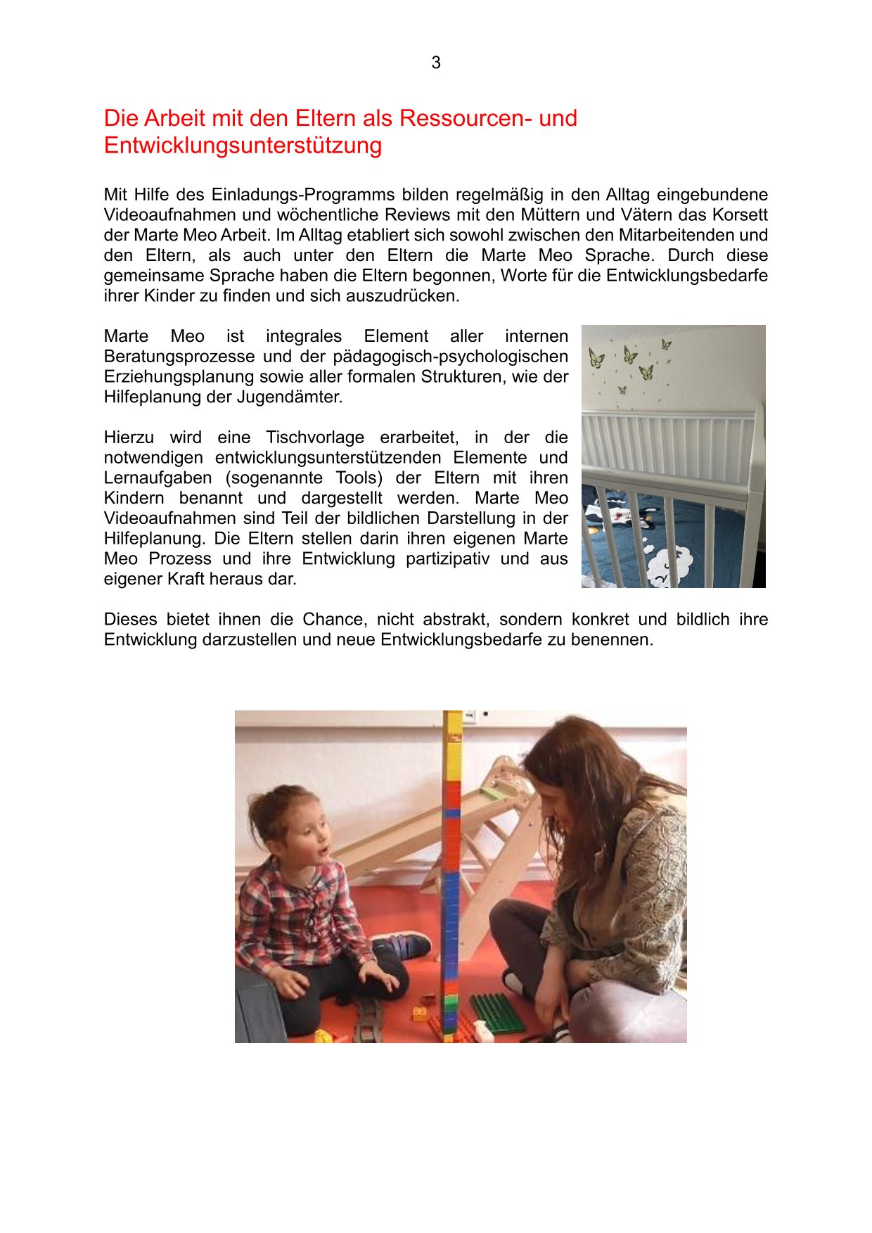 Wir wollen die Mütter oder Väter ermutigen, sie aktivieren, sie anleiten und begleiten, das Wohl ihrer Kinder in ihren Blick zu bekommen und die Bedürfnisse ihrer Kinder zu sehen und ihnen gerecht zu werden. Sie sollen Entwicklungen ihrer Kinder aktiv und aus eigener Kraft fördern und begleiten und eine tragfähige Beziehung zu ihren Kindern aufbauen.