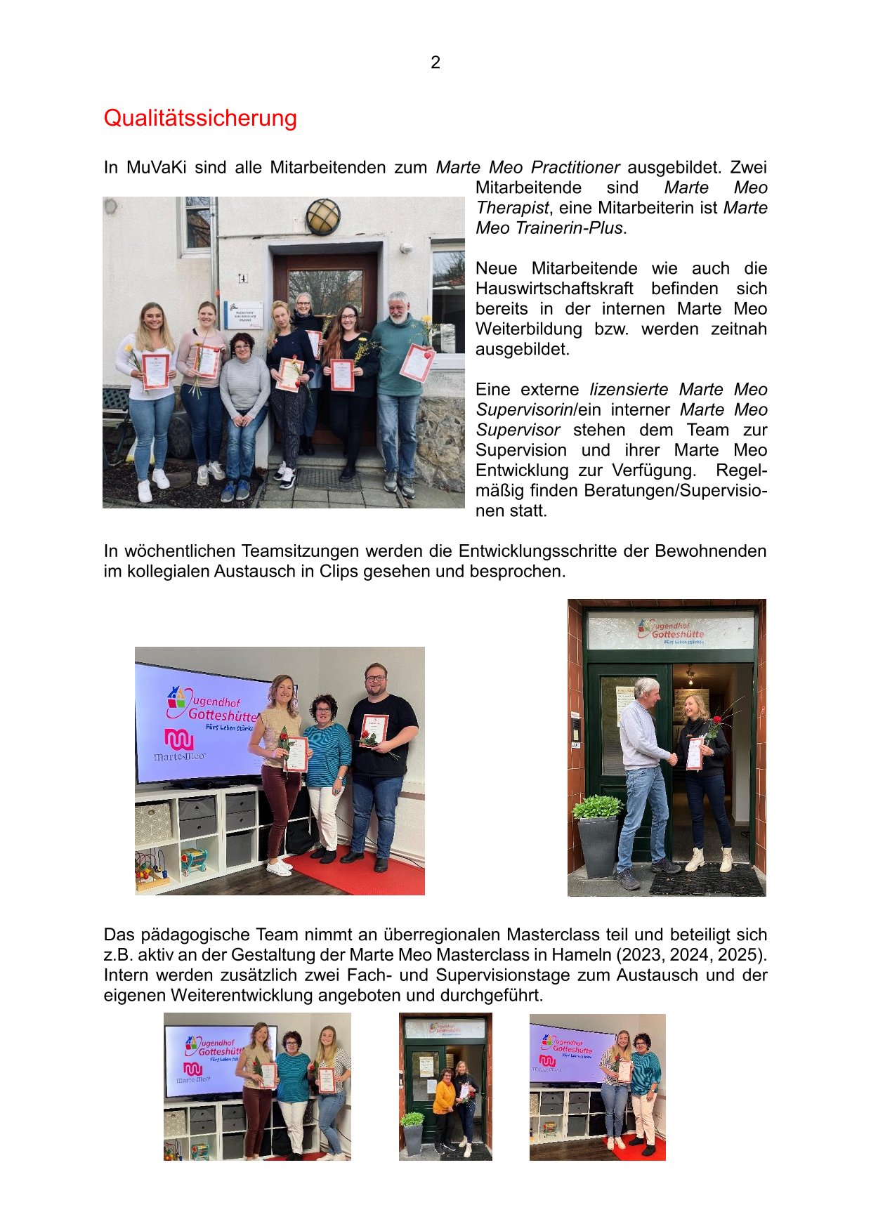 In dem MuVaKi werden minderjährige ab 16 Jahre und volljährige Mütter, Schwangere oder Väter mit ihren Kindern (bis 6 Jahre) nach § 19 SGB VIII aufgenommen, die ihre eigene Persönlichkeitsentwicklung, aufgrund ungünstiger Sozialisationsbedingungen, noch nicht abgeschlossen haben und Unterstützung brauchen, um wichtige Entwicklungsschritte aufzuholen. Das Erlangen von Selbstständigkeit bzw. Selbstwirksamkeit der Mütter oder Väter in dem MuVaKi ist Hauptziel unserer Arbeit. Ein Team von 6,25 Fachkräften und eine Hebamme kümmern sich 24 Stunden rund um die Uhr um die jungen Familien.