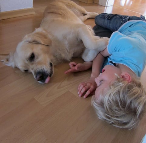 Da der Hund sich täglich frei im Haus und Garten bewegen kann, haben die Kinder auch täglich die Möglichkeit der freien Begegnung mit dem Hund. Kleine Spieleinheiten und auch mal kuscheln zwischendurch mit dem Hund gehören genauso zum Alltag wie der zielgerichtete Einsatz in der tiergestützten Pädagogik anhand einer Förderplanung.