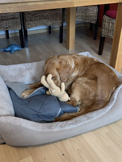 Es gibt klare Regeln im Umgang mit dem Hund. Es ist dem Hund jederzeit möglich sich auf seinen Platz zurückzuziehen, an dem er von allen in Ruhe gelassen werden muss.